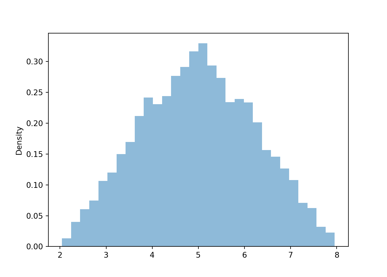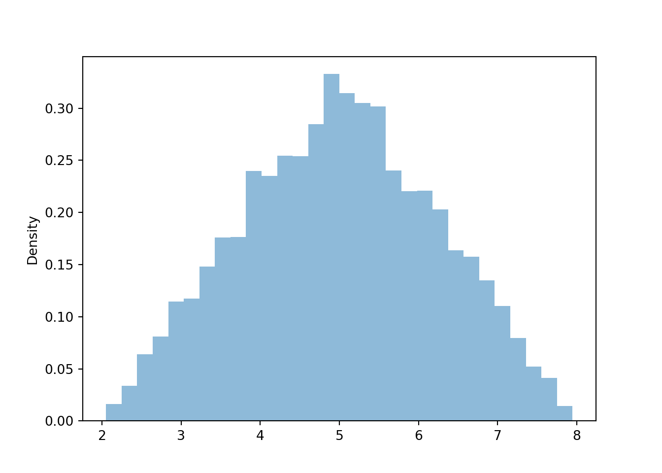 y_given_Xeq3p5 = ( Y | (abs(X - 3.5) < 0.1) ).sim(10000)