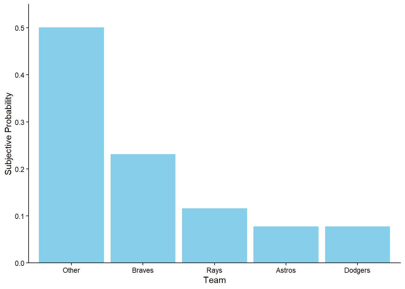 However, the meaning of probability does seem different in physically repeatable situations like coin flips than in single occurrences like the next Superbowl. Let’s switch sports and consider the World Series of Major League Baseball. Consider the 2022 World Series, which the Houston Astros won. As of June 17, 2022,