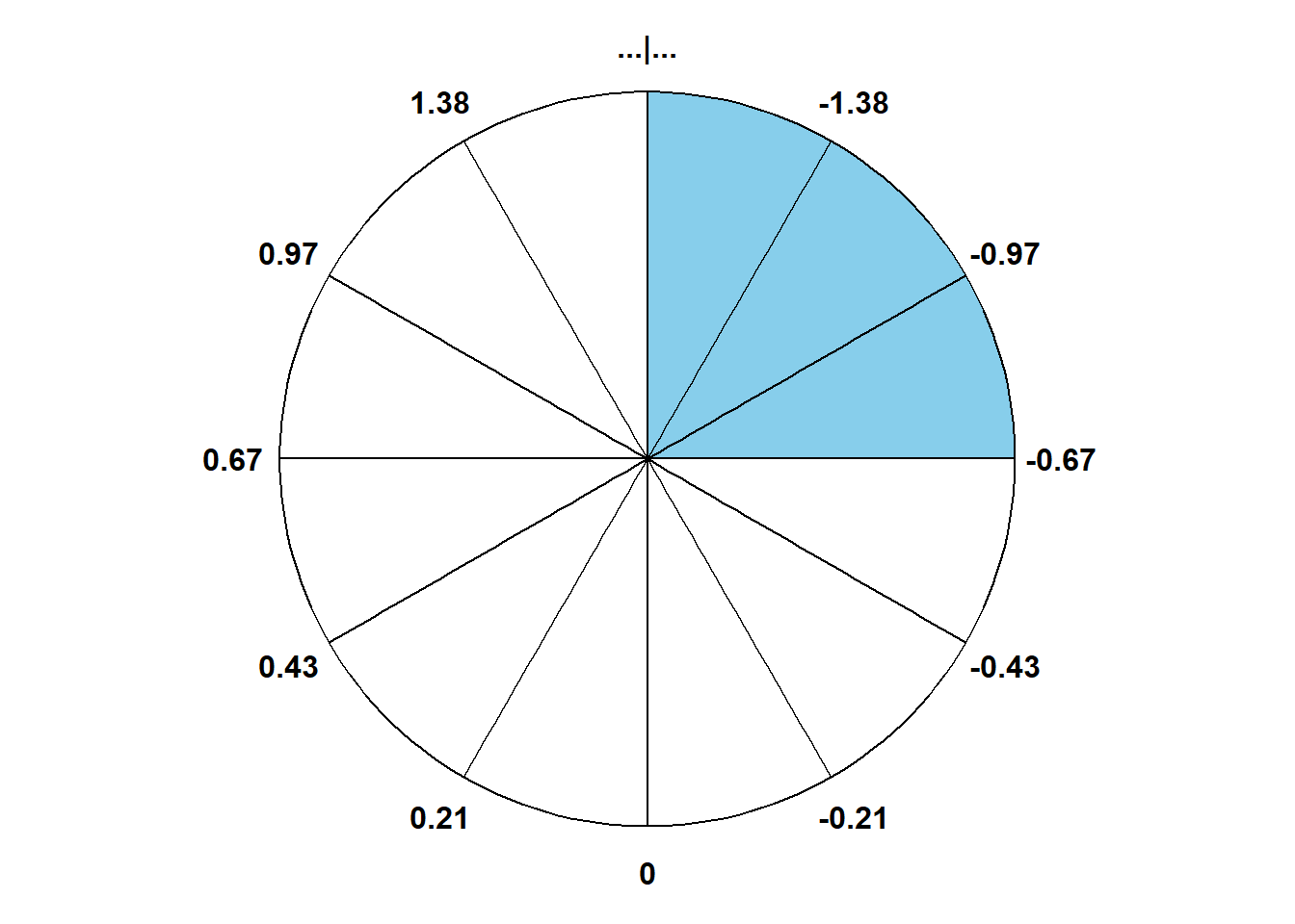 (c) spinner; shaded area represents \(\Phi(-0.67) = 0.25\)