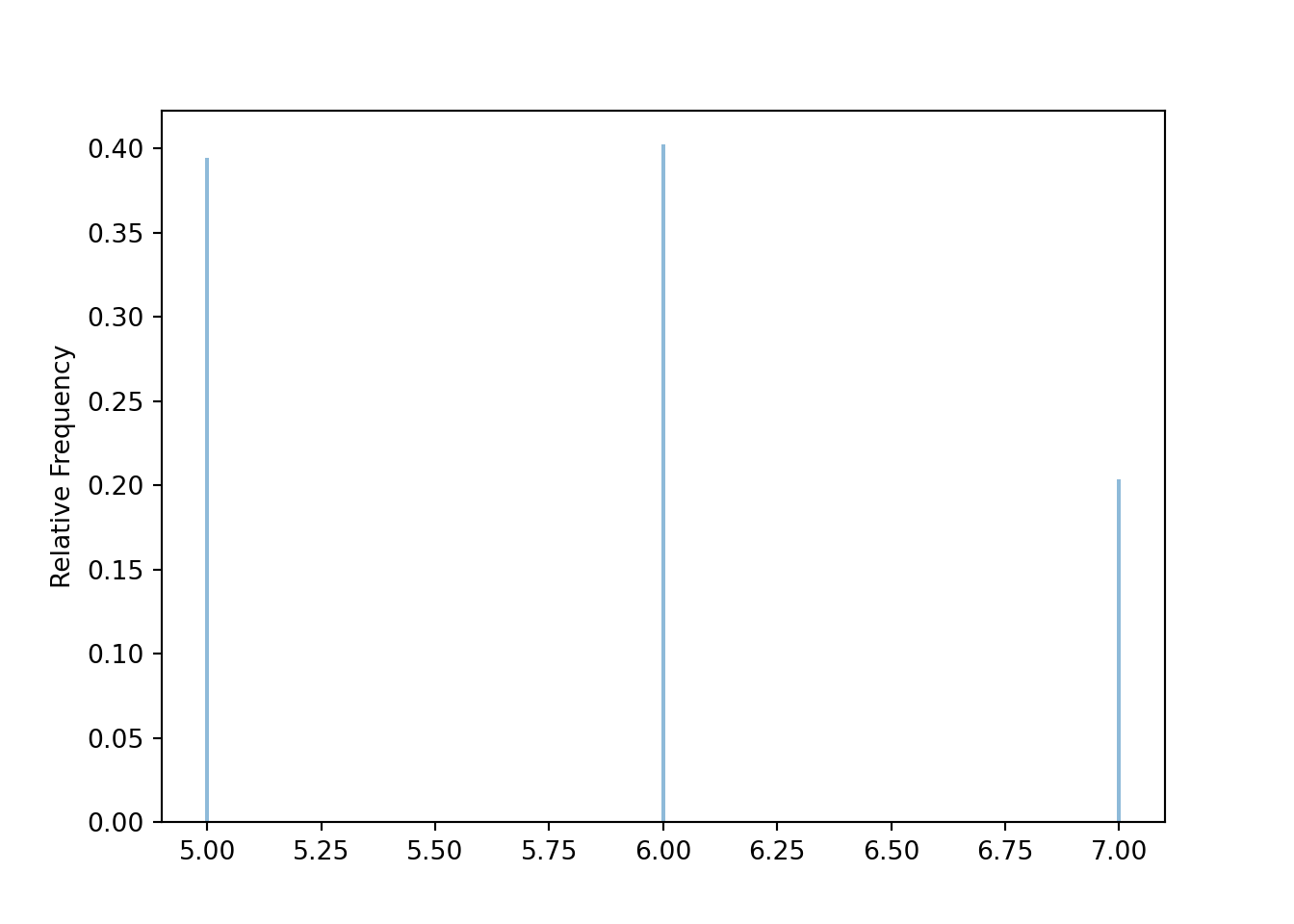 population = BoxModel([5, 6, 7, 30], probs = [0.4, 0.4, 0.19, 0.01])