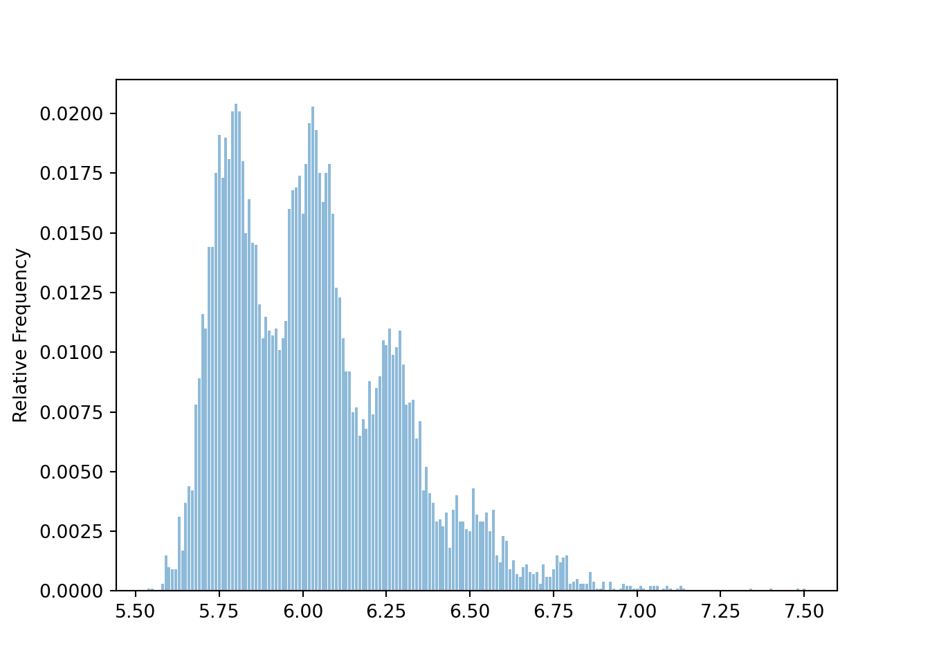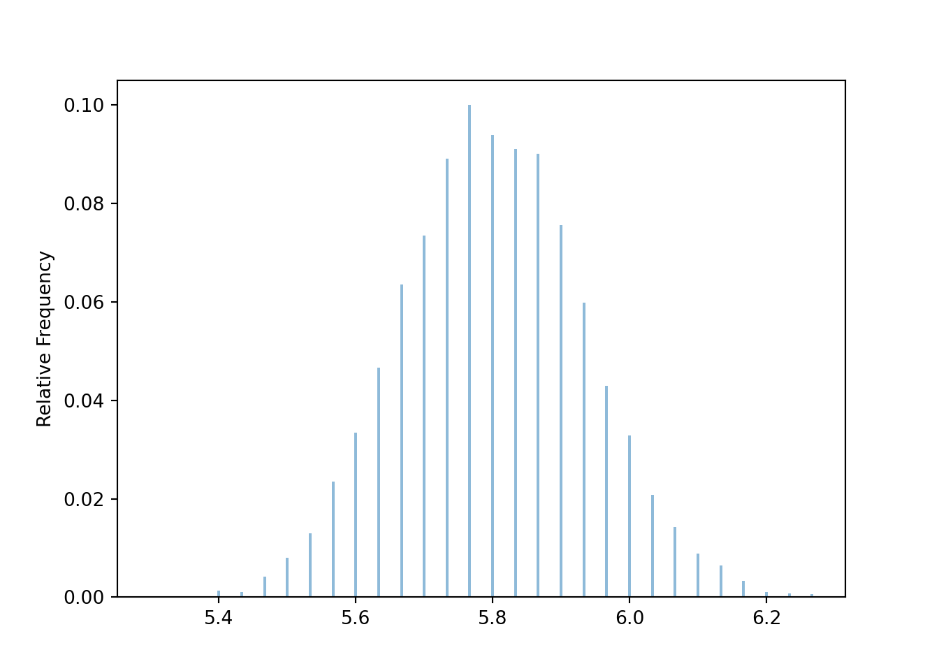 xbar.mean(), xbar.var(), xbar.sd()(5.8005, 0.018192416666666662, 0.13487926700077615)