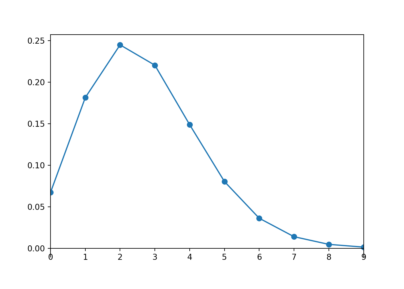 Poisson(2.7).plot()<symbulate.distributions.Poisson object at 0x0000022CCBD77CB0>