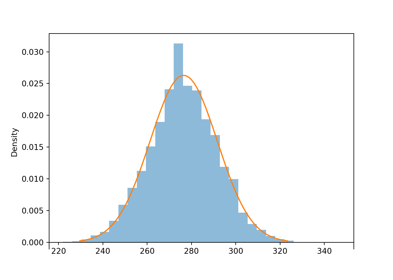 Normal(2.7 * n, sqrt(2.7) * sqrt(n)).plot()<symbulate.distributions.Normal object at 0x0000022CE02E9810>