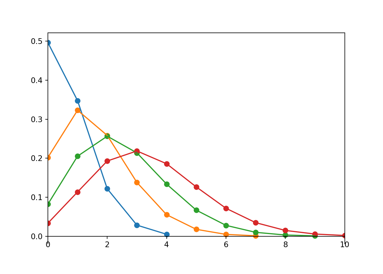 In this chapter we’ll investigate marginal distributions of discrete random variables. We have already been introduced to distributions of discrete random variables; see Section 2.5 and Section 3.5. Now we’ll explore in more detail.